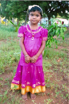 Gohila is een meisje dat sinds enkele jaren in het weeshuis Pudhu Punal woont. Haar vader is na een ernstige ziekte in 2011 overleden. Zijn ziekte heeft veel geld gekost en haar moeder heeft grote problemen om alle kosten te kunnen betalen. Ze staat echter voor een hopeloze taak. Als collie verdient haar moeder ongeveer 900 rupee per maand (ca € 13) en daar moet zij het schoolgeld, de dagelijkse levensbehoeften en de schulden van afbetalen. Gohila dreigde dan ook tussen wal en schip te raken en haar moeder zag geen andere uitweg dan contact op te nemen met een weeshuis. Ook het weeshuis voorzag grote problemen voor haar dochter en er is dan ook besloten om haar op te nemen in het weeshuis Pudhu Punal. Gohila gaat nu dagelijks naar de St Joseph’s primary school te Batlagundu en is verzekerd van dagelijks eten en drinken.
